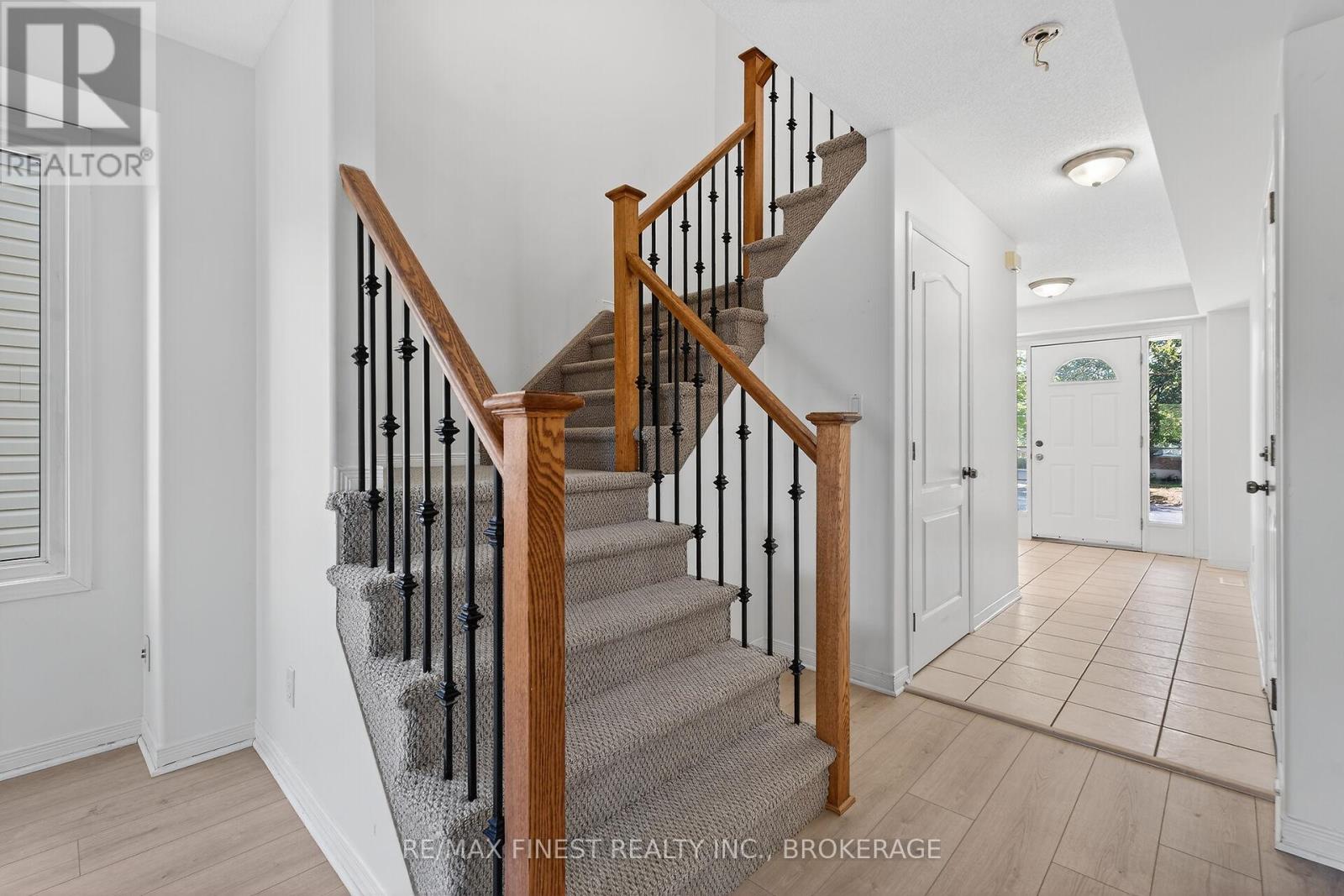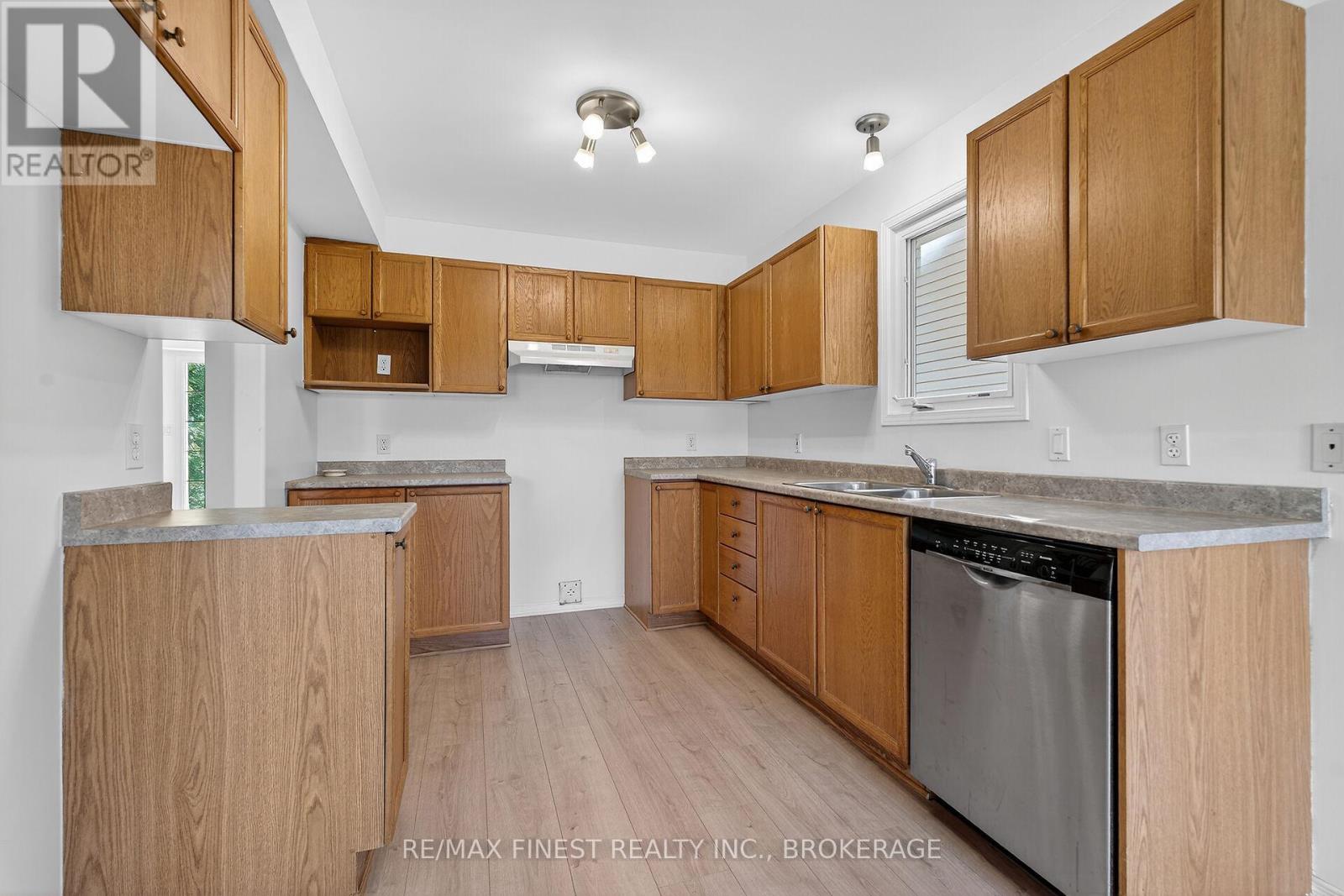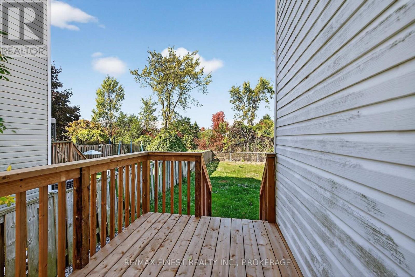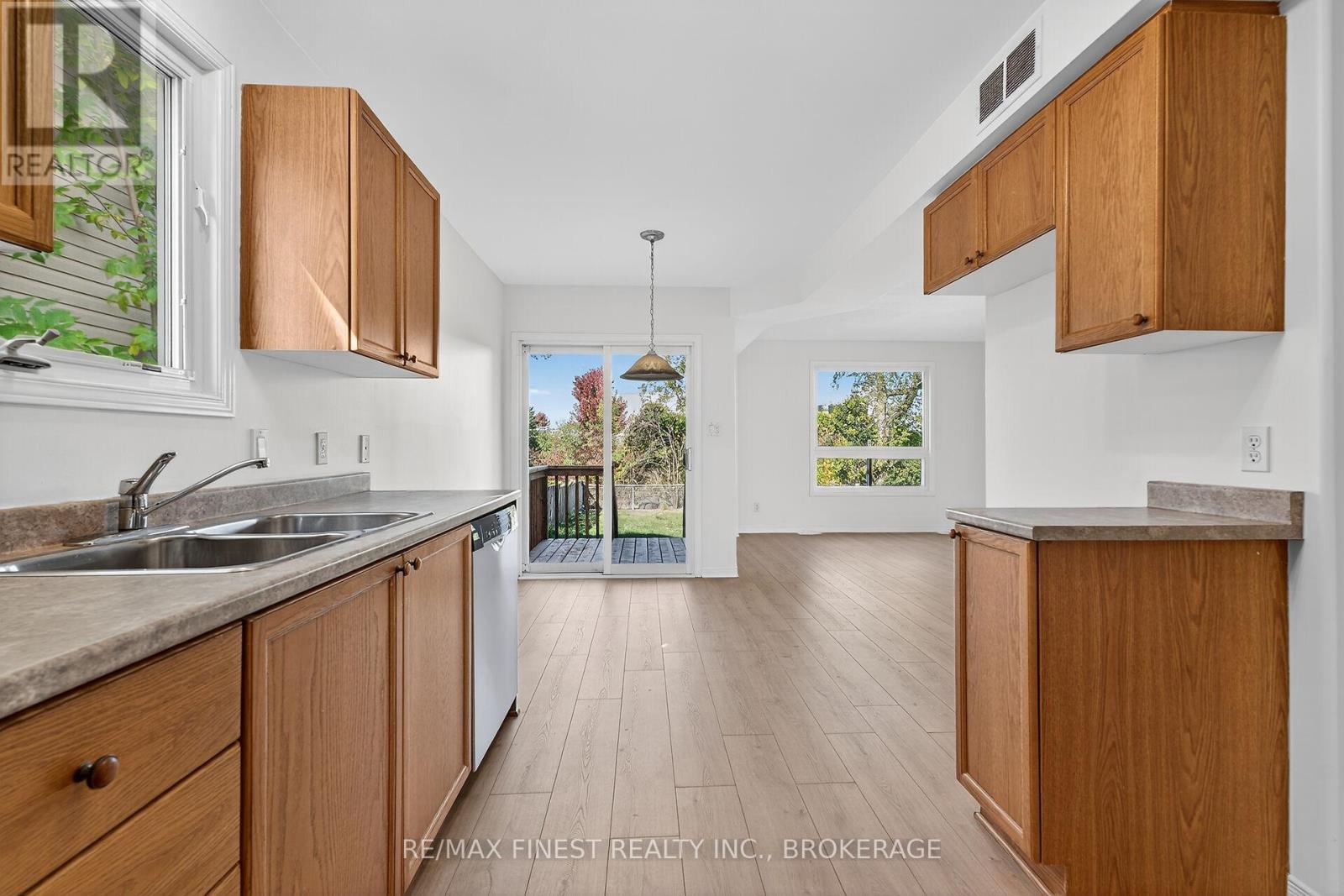 This move-in ready home offers fresh new flooring throughout all three levels and a bright, functional kitchen with a cozy dinette area that opens directly onto a brand-new deck - perfect for entertaining. Enjoy the privacy of a fully fenced backyard that backs onto scenic walking trails. The main floor features a convenient 2-piece powder room, while upstairs you'll find a spacious principal bedroom complete with a walk-in closet and 4pc ensuite bath, along with a 4- piece main bathroom. Upstairs you will also find an open loft space for a computer room or additional tv room. The kitchen is equipped with a built-in dishwasher for added convenience. The basement has a finished rec room, utility area and Laundry room. Additional features include a finished rec room with new flooring, a new stone walkway, and a widened driveway that comfortably fits two vehicles and a single attached garage. Recent updates include a rented newer hot water tank (2025), A/C (2014), and roof (2019). Located in Kingston's desirable east end, this home offers comfort, privacy, and proximity to parks, trails, and more. Immediate occupancy is available. (id:29295)